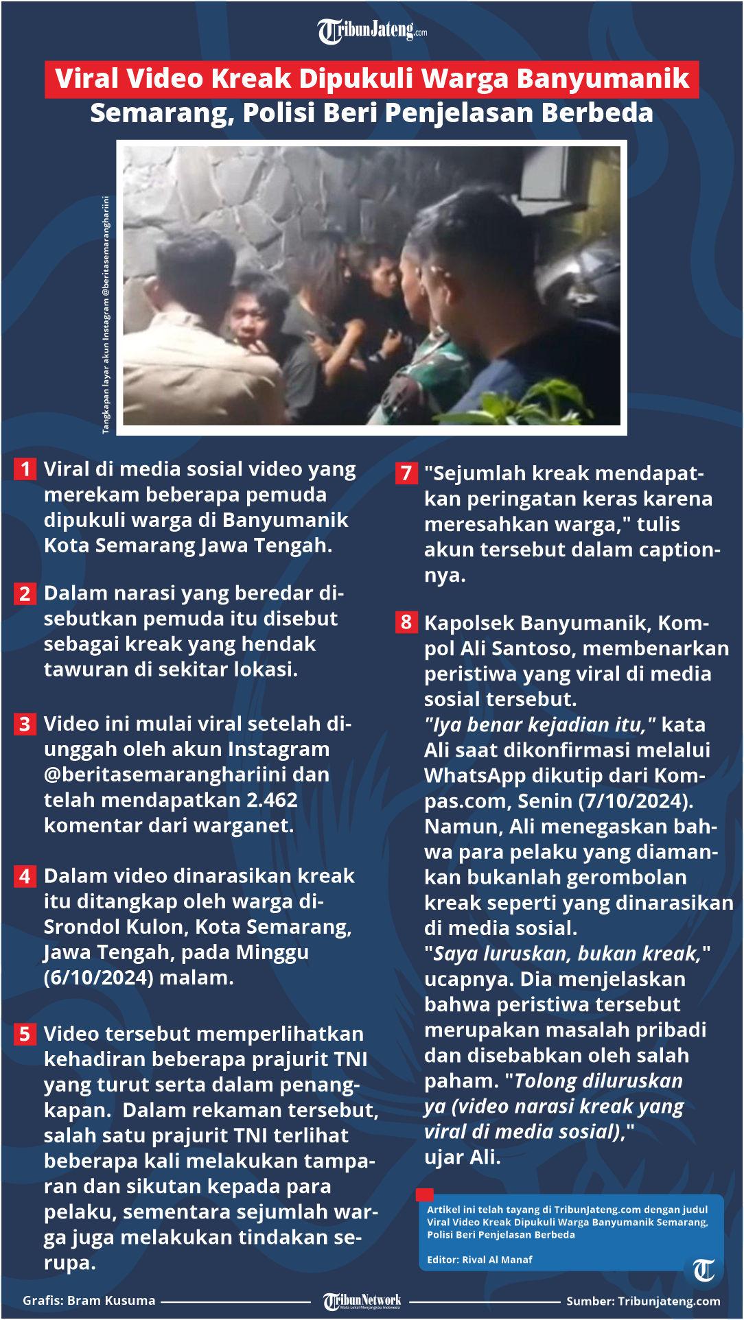 TRIBUNJATENG.COM - Infografis Viral Video Kreak Dipukuli Warga Banyumanik Semarang, Polisi Beri Penjelasan Berbeda