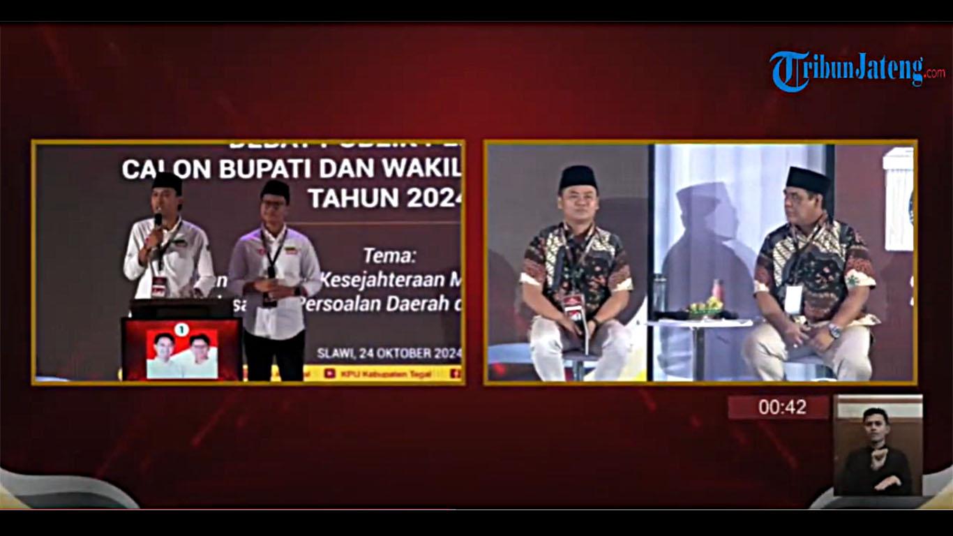 | Debat Perdana, Ini Tanggapan Paslon Bupati dan Wakil Bupati Tegal Bima-Mujab dan Ischak-Kholid |