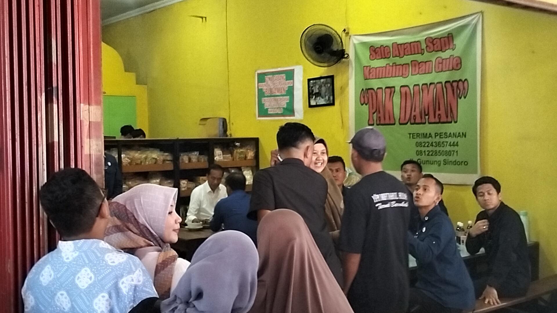 Saat tiba di Blora, Jokowi singgah ke Warung Sate Pak Daman Blora untuk makan sore.