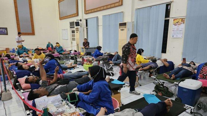 Ratusan peserta antusias mengikuti donor darah di Balai Pengobatan Umum Kapuran, Jalan Ki Mangunsarkoro