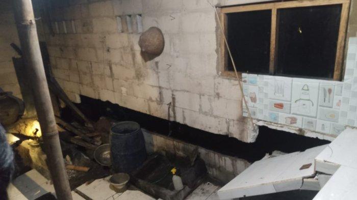 Ipda Slamet menjelaskan, rumah milik Tarsono bagian belakangnya mengalami retak pada dinding selebar 30 cm dan panjang 6 meter, lalu lantainya longsor sedalam 1 meter.