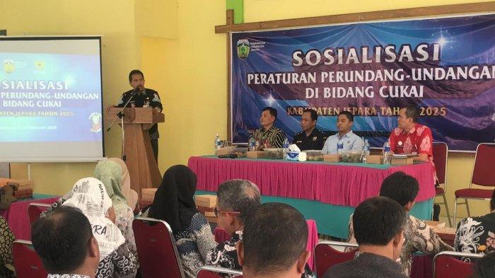 TRIBUNJATENG.COM, JEPARA - Pemerintah Kabupaten Jepara bersama Bea Cukai Kudus melakukan sosialisasi peraturan perundang-undangan di Bidang Cukai di kantor Kecamatan Nalumsari, Kabupaten Jepara, Kamis (27/2/2025).