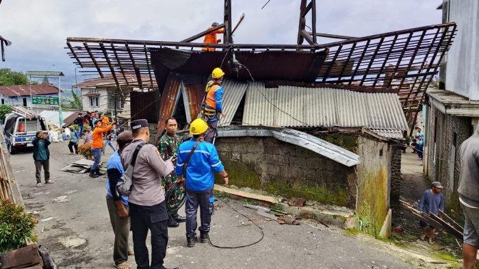 Puluhan rumah di Dusun Tempuran, Desa Pagerejo Kecamatan Kertek, Kabupaten Wonosobo rusak akibat diterjang angin puting beliung, Minggu (9/3/2025).