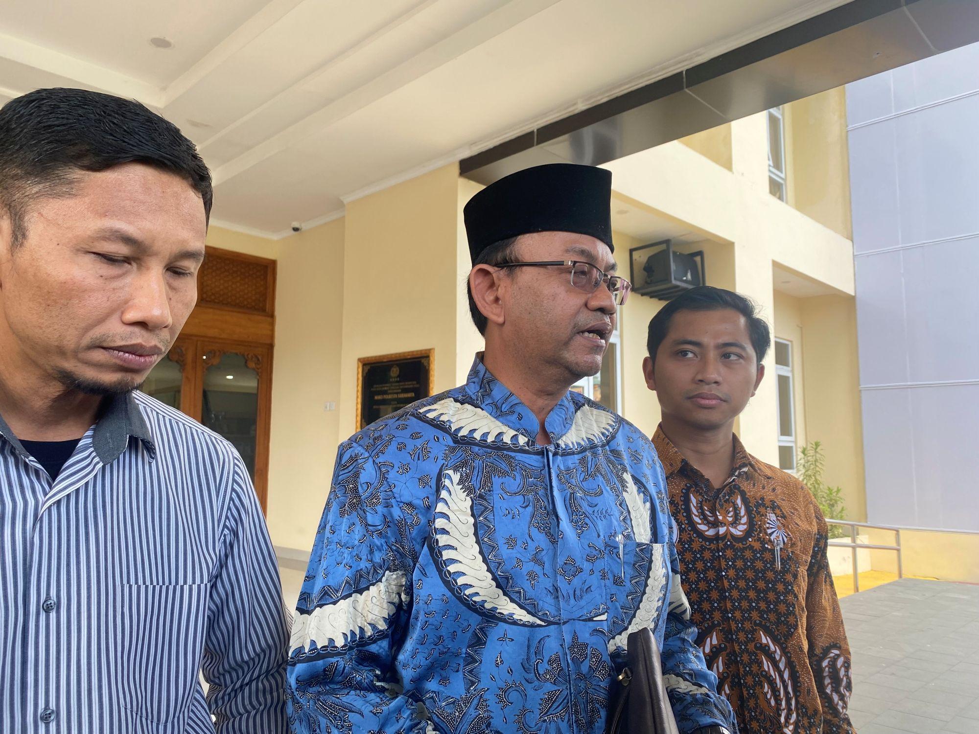 Sugeng Riyanto mengaku mewakili masyarakat untuk melaporkan didampingi Ketua Tim Hukum MUI Solo, Dedy Purnomo.