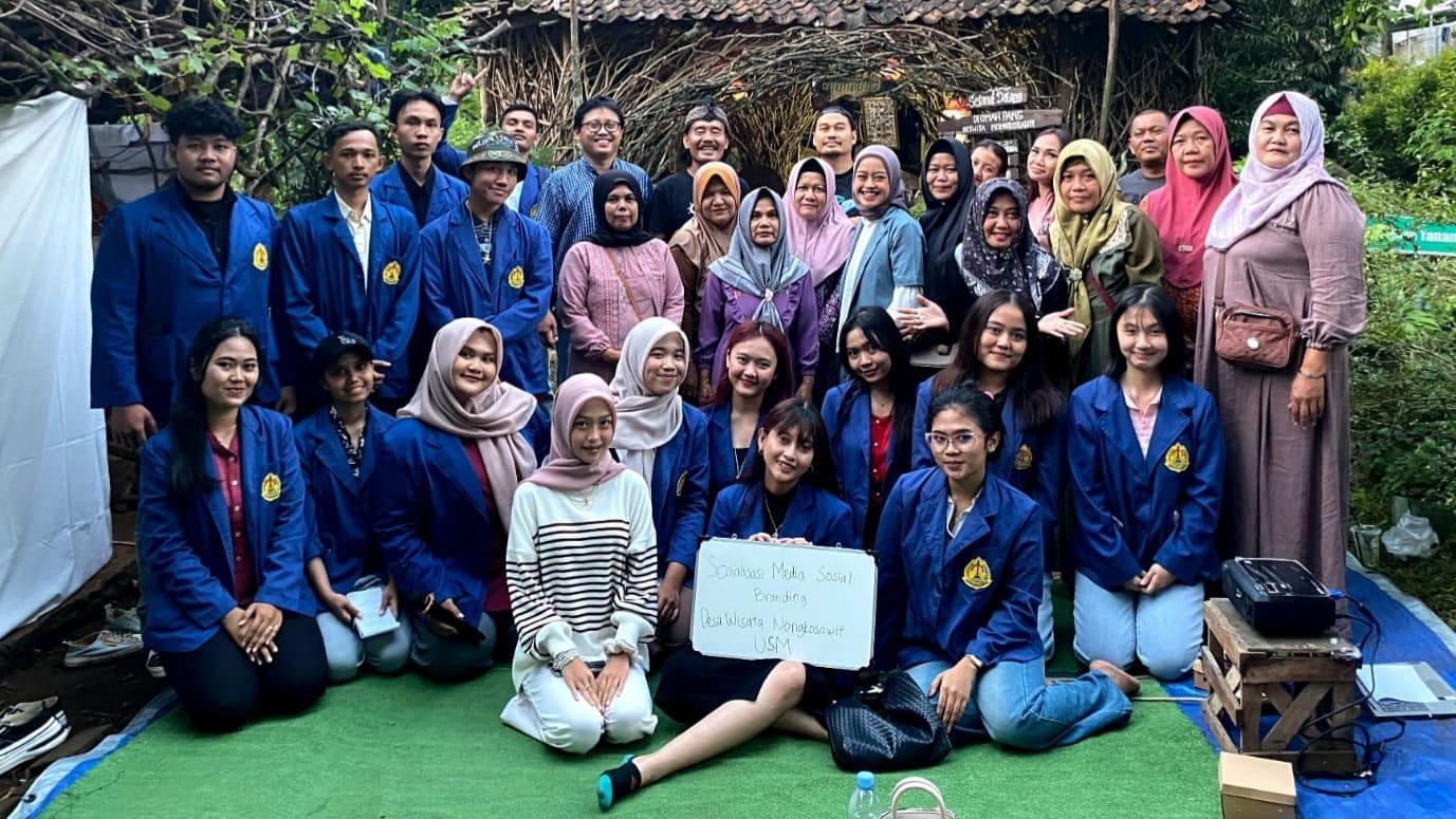 Mahasiswa Prodi Pariwisata USM melaksanakan sosialisasi bertajuk "Strategi Pengelolaan Media Sosial untuk Branding Desa Wisata Nongkosawit".
