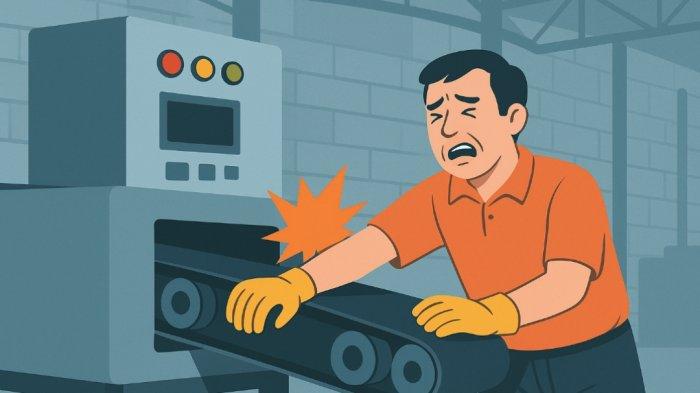 Peristiwa nahas terjadi ketika ia tengah membersihkan konveyor mesin yang mengalami macet atau gangguan operasi.