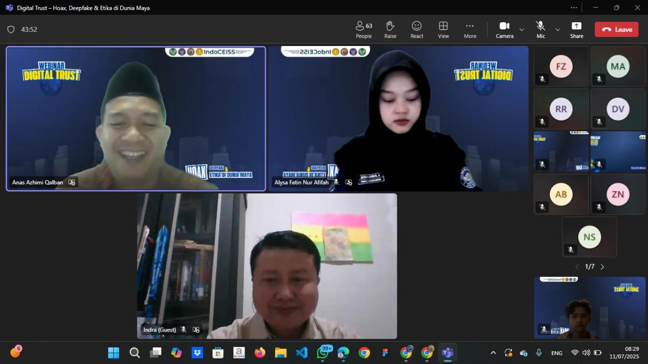 Menyikapi fenomena ini, Program Studi Informatika UIN Prof. K.H. Saifuddin Zuhri (UIN Saizu) Purwokerto menyelenggarakan Webinar Nasional bertajuk “Digital Trust, Hoax, Deepfake & Etika di Dunia Maya”, Jumat, 11 Juli 2025.
