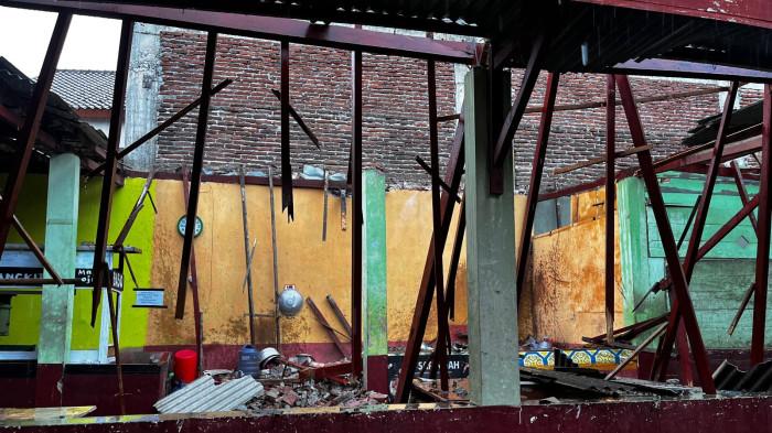 Angin kencang yang melanda wilayah Purbalingga pada Senin (13/10/2025) sore, mengakibatkan bangunan kantin SMPN 1 Kalimanah rusak berat.