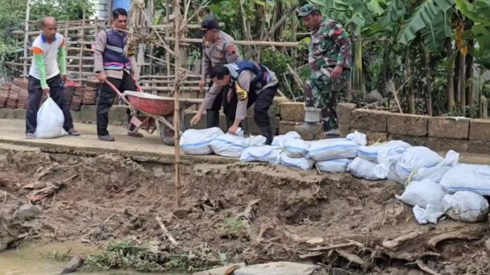 Warga bersama aparat TNI-Polri serta aparatur pemerintahan desa pun bergotong royong melakukan perbaikan tanggul secara darurat.