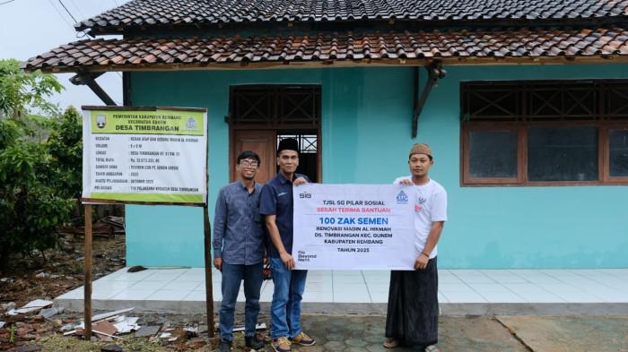 TRIBUNJATENG.COM, REMBANG - Sebagai bentuk komitmen terhadap tanggung jawab sosial perusahaan, PT Semen Gresik melalui program Tanggung Jawab Sosial dan Lingkungan (TJSL) Pilar Sosial menyalurkan bantuan puluhan juta dan ratusan zak semen untuk mendukung renovasi Madrasah Diniyah (Madin) Al Hikmah di Desa Timbrangan, Kecamatan Gunem, Kabupaten Rembang.
