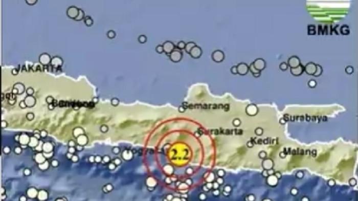 Pusat gempa berada di koordinat 7,97 Lintang Selatan dan 110,44 bujur timur atau sekitar 12 kilometer tenggara Bantul, DIY.