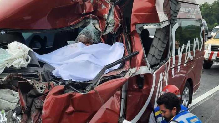 Tiba-tiba, sopir menabrak bagian belakang truk yang sedang berjalan di lajur satu.