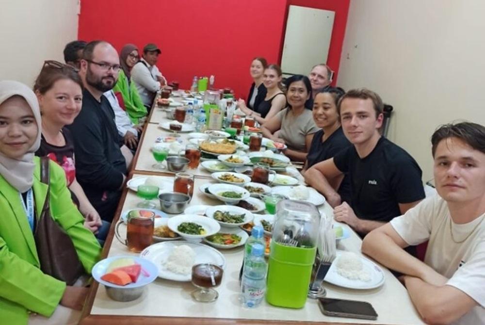 Suasana penuh keakraban tersebut menjadi kesempatan bagi para mahasiswa dan dosen tamu untuk merasakan kuliner nusantara secara langsung.