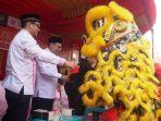 Wali Kota Pekalongan, Achmad Afzan Arslan Djunaid dan istrinya Inggit Soraya memberikan semangat kepada para atlet yang berlaga di FORNAS VIII.