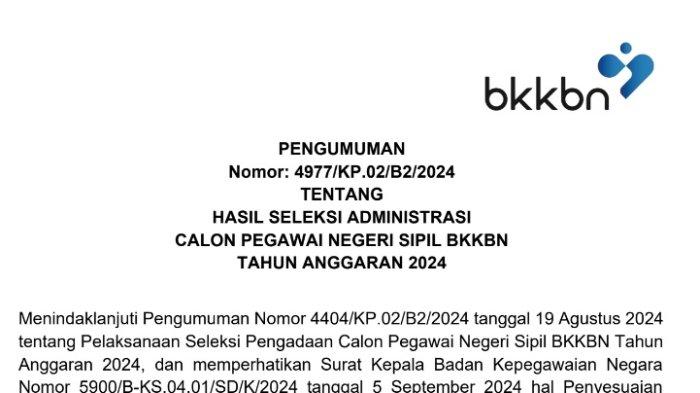 Link Download PDF Hasil Seleksi Administrasi CPNS 2024 BKKBN, Selamat 27.685 Pelamar Lolos!