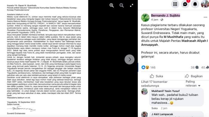 Hal itu viral setelah surat permintaan maaf Suwardi diunggah akun Facebook Bernando J. Sujibto pada Kamis (21/9/2023).