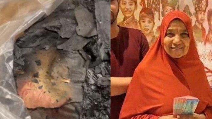 Nasib pilu dialami seorang ibu-ibu yang menangis tersedu-sedu lantaran kehilangan uang Rp11 juta karena hangus terbakar.