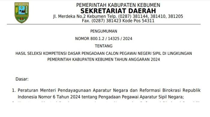 Link Download PDF Hasil SKD Pemkab Kebumen, Selamat 832 Peserta Lanjut SKB!