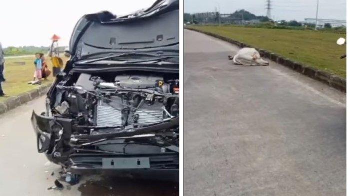 Viral Kecelakaan Mobil Kijang Innova Tabrak Sapi Nyebrang di Karawang Hingga Ringsek Parah
