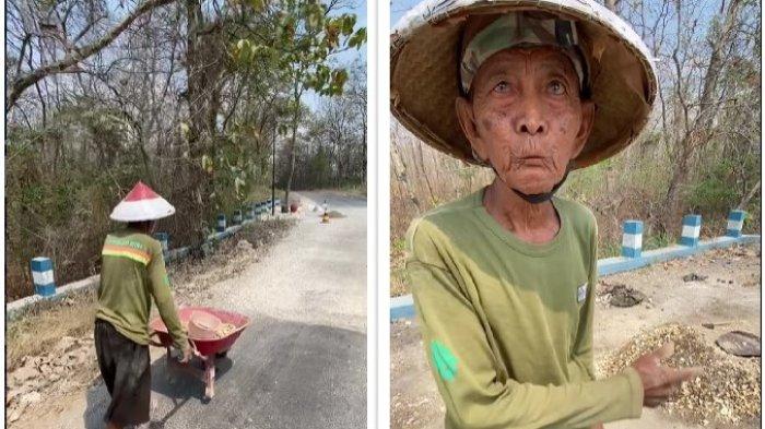Sosok Mbah Sutaji Usia 90 Tahun Sering Tambal Jalan Berlubang di Lamongan, Beli Material Sendiri