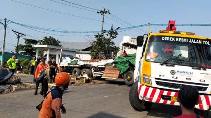 Truk terseret hingga jarak beberapa meter. Eskavator yang ada di lokasi kecekajaan juga hancur karena tertabrak truk