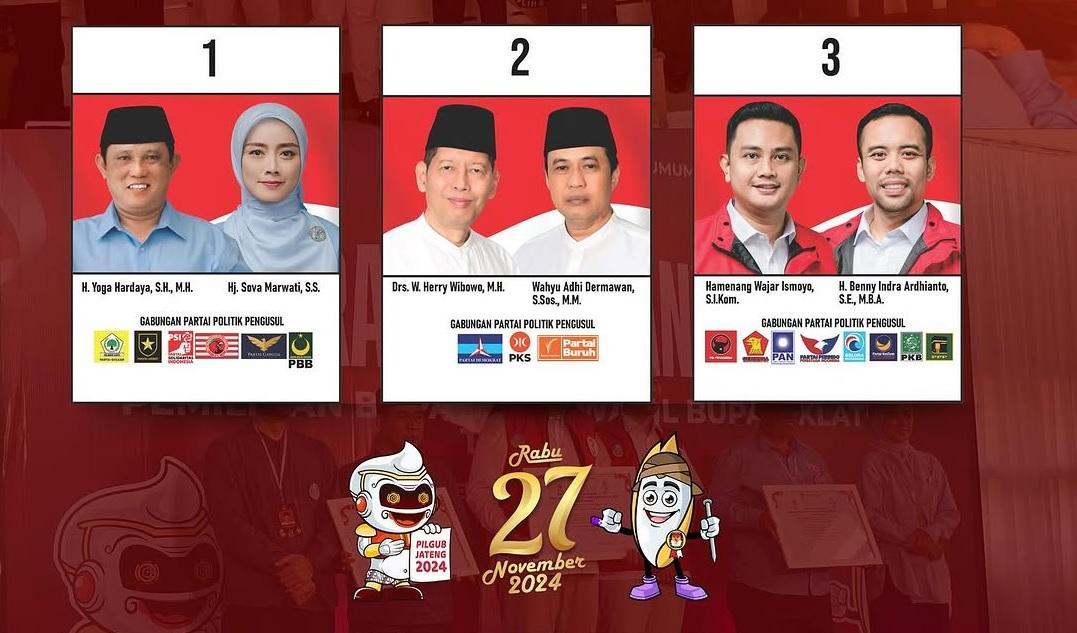 Link Live Streaming Hasil Quick Count Pilbup Klaten 2024, Yoga-Sova Vs Herry-Wahyu Vs Hamenang-Benny