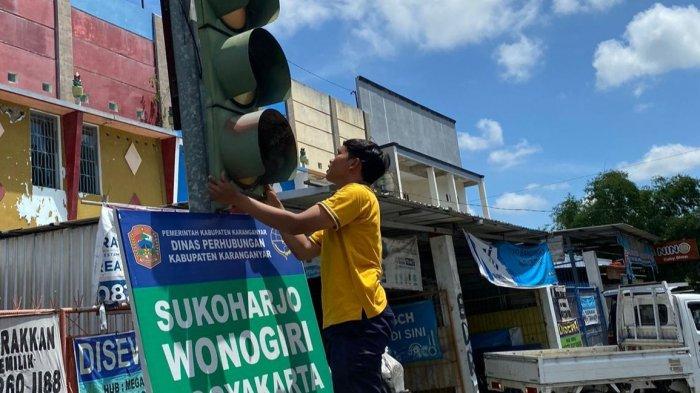 Dishub Karanganyar melakukan pengecekan rambu perintah penunjuk jalan (RPPJ) portabel di sejumlah titik sebagai persiapan menyambut momen arus mudik l