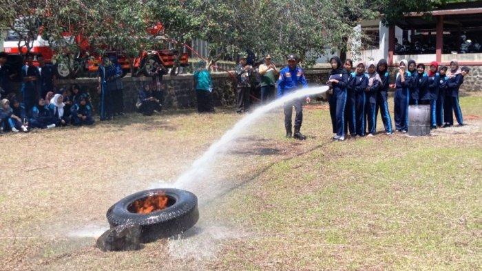 siswa SMA Negeri 1 Subah, Kabupaten Batang antusias mengikuti simulasi pemadaman api dan penanganan hewan liar yang dipandu langsung petugas Damkar.