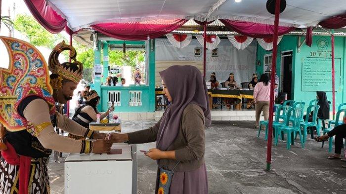Petugas KPPS TPS 05 RW 04, Kelurahan Krapyak, Kecamatan Semarang Barat, Kota Semarang menggunakan kostum tokoh pewayangan, Rabu (27/11/2024).