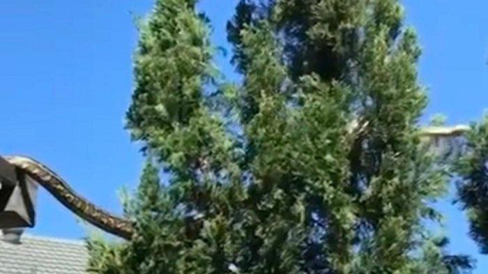 Detik-detik Ular Raksasa Berukuran 5 Meter Melintas di Atap Rumah Warga