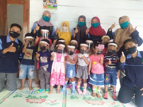 KKN UIN Walisongo Semarang menjalankan program pembagian 100 makser kain gratis pada Minggu (18/20) .