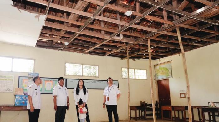 Wakil Bupati Kudus, Bellinda Putri Sabrina Birton mengecek langsung kondisi ruang kelas di SD Negeri 2 Bae yang rusak.
